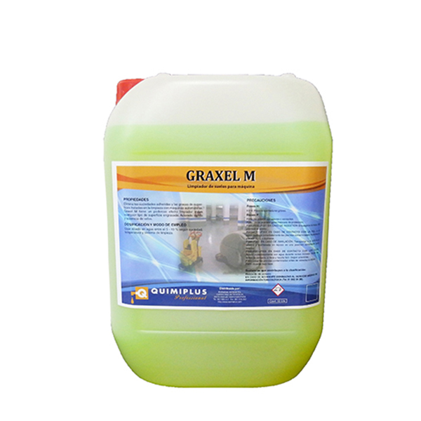 Elimina las suciedades adheridas y las grasas de superficies tratadas en la limpieza con máquinas automáticas. Graxel M tiene un poderoso efecto limpiador y no deja brillo.